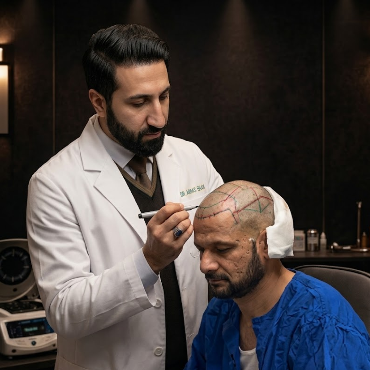 A detailed hair and scalp assessment where Dr. Abbas carefully evaluates your condition, concerns, and goals before recommending any treatment.